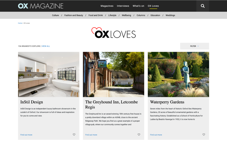 Our magazines exist beyond the page. Each issue goes out digitally to a database of engaged subscribers, and is also hosted on our sleekly designed, easily navigable websites – along with frequently uploaded unmissable content. Our dedicated OX Loves section provides a space to showcase brands with in-depth profiles which can be further amplified across our active social media platforms: we love to share.